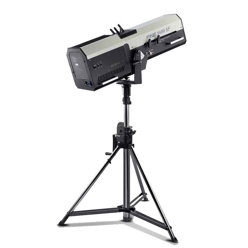 FINE 1400SF is a new professional follow spot designed for theatre and studio room using OSRAM high CRI 1400W lamp with 188mm optical lens. It becomes popular item due to its outstanding features of strong beam effect, total light output of 36,000lm, Ra>95 as well as even spot (evenness>80%). Its design is compact, lightweight with long body of 915mm, by which it can be in lifting stand and hanging installment (option) ways and can be placed flexibly in follow spot room of theatre or the back of audience hall. It can also be used in entertainment and wedding place.